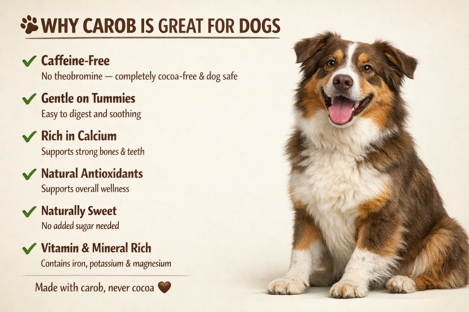 We are passionate about providing high-quality products that enrich the lives of dogs and their owners. Carob is a super healthy powder for dogs!